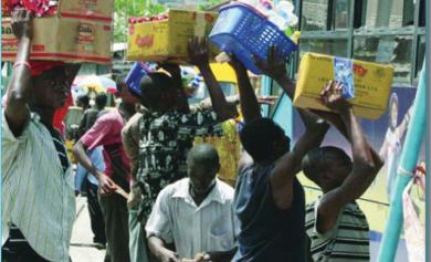 All a vigilant hawker has to scream is, “Taskforce! Taskforce!” and surprise and afraid, the hawkers suddenly break into a run, clutching their wares? with the men of the AEPB task force hot on their heels. If and when the hawkers are caught, their wares are confisticated and most times destroyed on the spot. Trays and bowls of sachet water, groundnuts, gala beef rolls, cooked maize, juice hawkers, and other consumables are smashed and kicked around, while non-perishables like handkerchiefs, towels and canned drinks are carted away by the men of the task force.